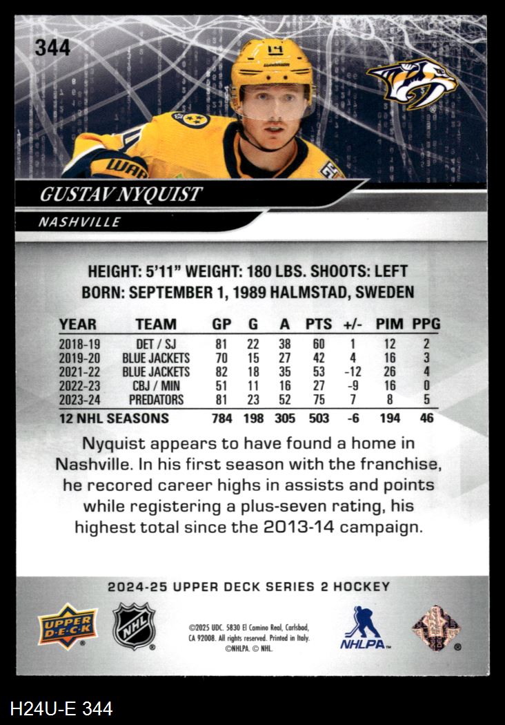 2024 Upper Deck #344 Gustav Nyquist 8 - NM/MT