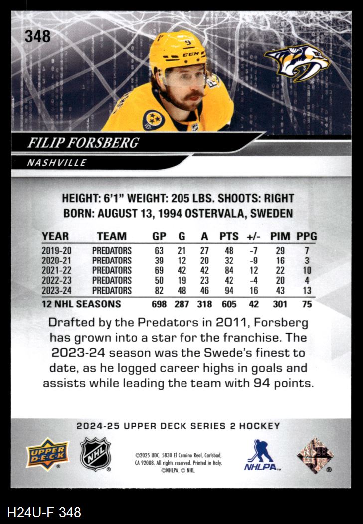 2024 Upper Deck #348 Filip Forsberg 8 - NM/MT