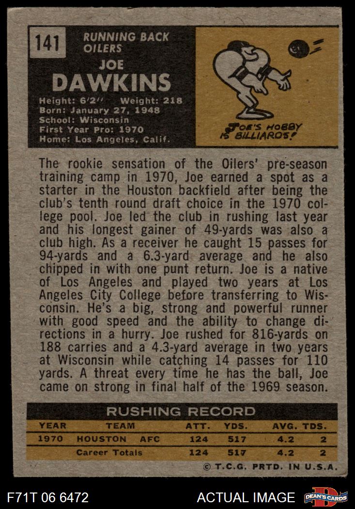 1971 Topps #141 Joe Dawkins 4 - VG/EX