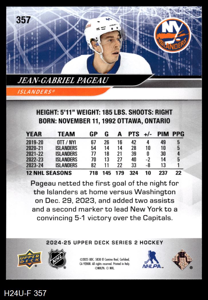 2024 Upper Deck #357 Jean-Gabriel Pageau 8 - NM/MT