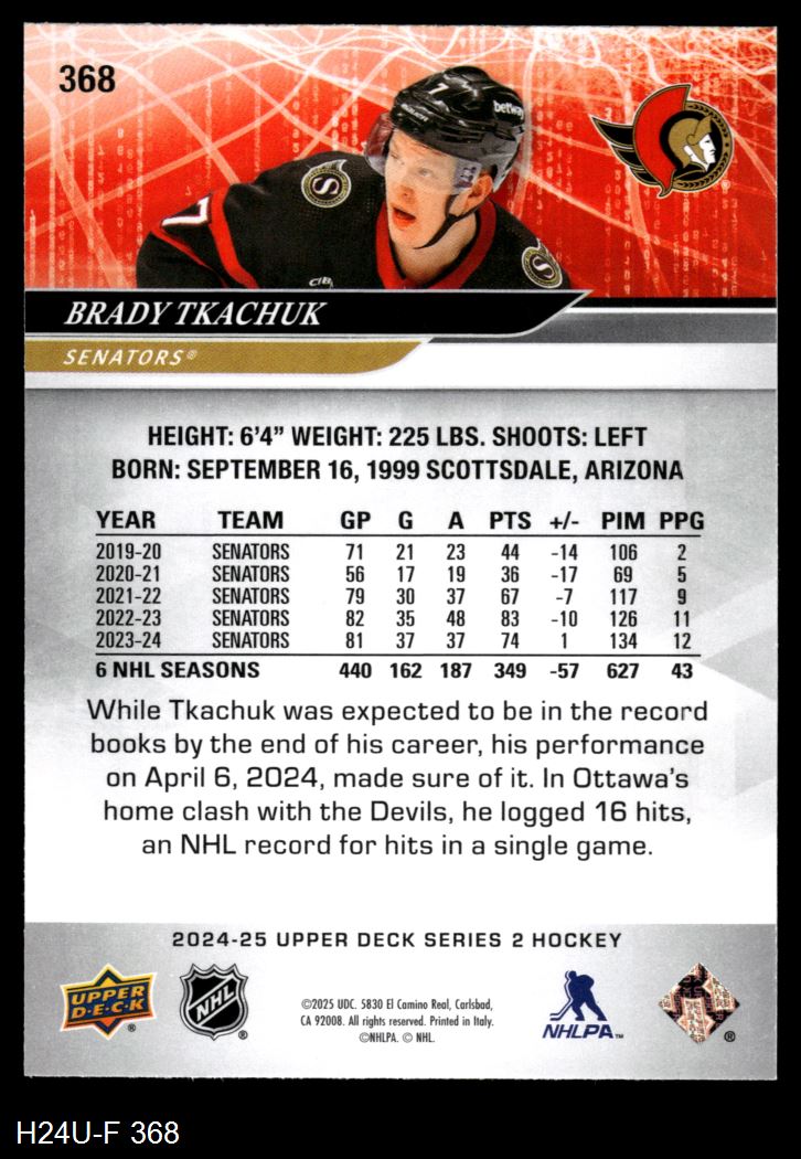 2024 Upper Deck #368 Brady Tkachuk 8 - NM/MT