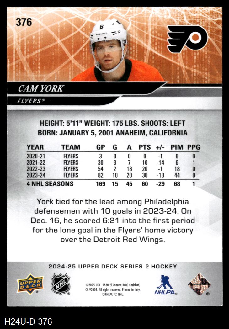 2024 Upper Deck #376 Cam York 8 - NM/MT