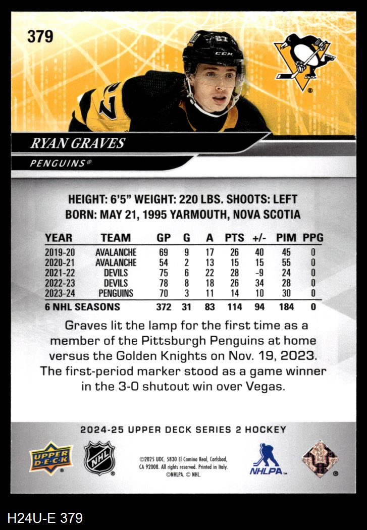 2024-25 Upper Deck Hockey Cards (1,079 available)2024 Upper Deck Penguins (30 available)