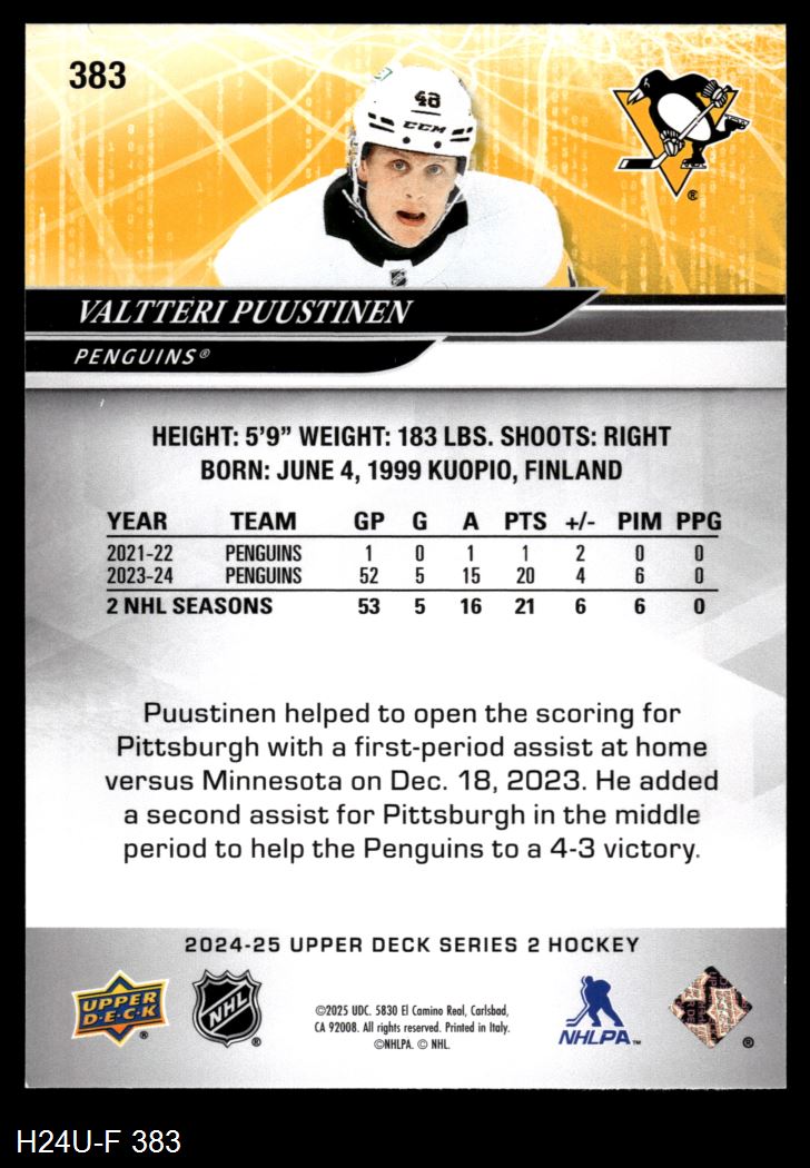 2024 Upper Deck #383 Valtteri Puustinen 8 - NM/MT