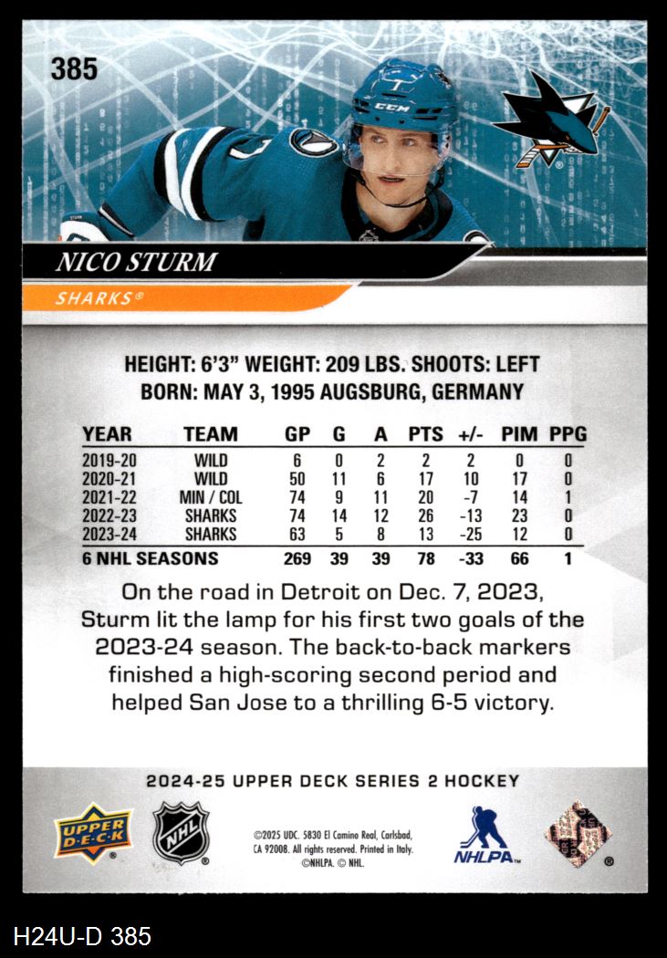 2024 Upper Deck #385 Nico Sturm 8 - NM/MT