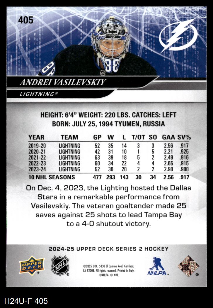 2024 Upper Deck #405 Andrei Vasilevskiy 8 - NM/MT