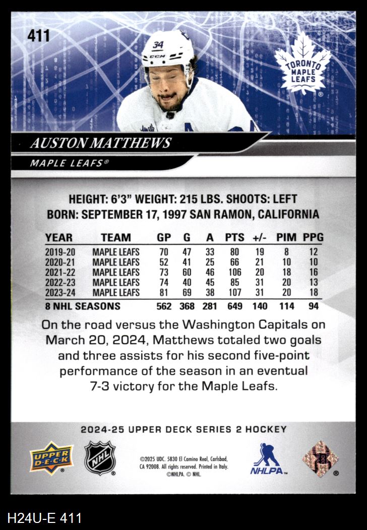 2024 Upper Deck #411 Auston Matthews 8 - NM/MT