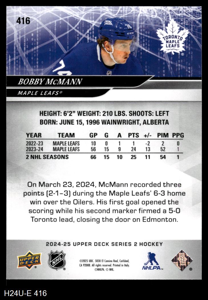 2024-25 Upper Deck Hockey Cards (1,071 available)2024 Upper Deck Maple Leafs (45 available)