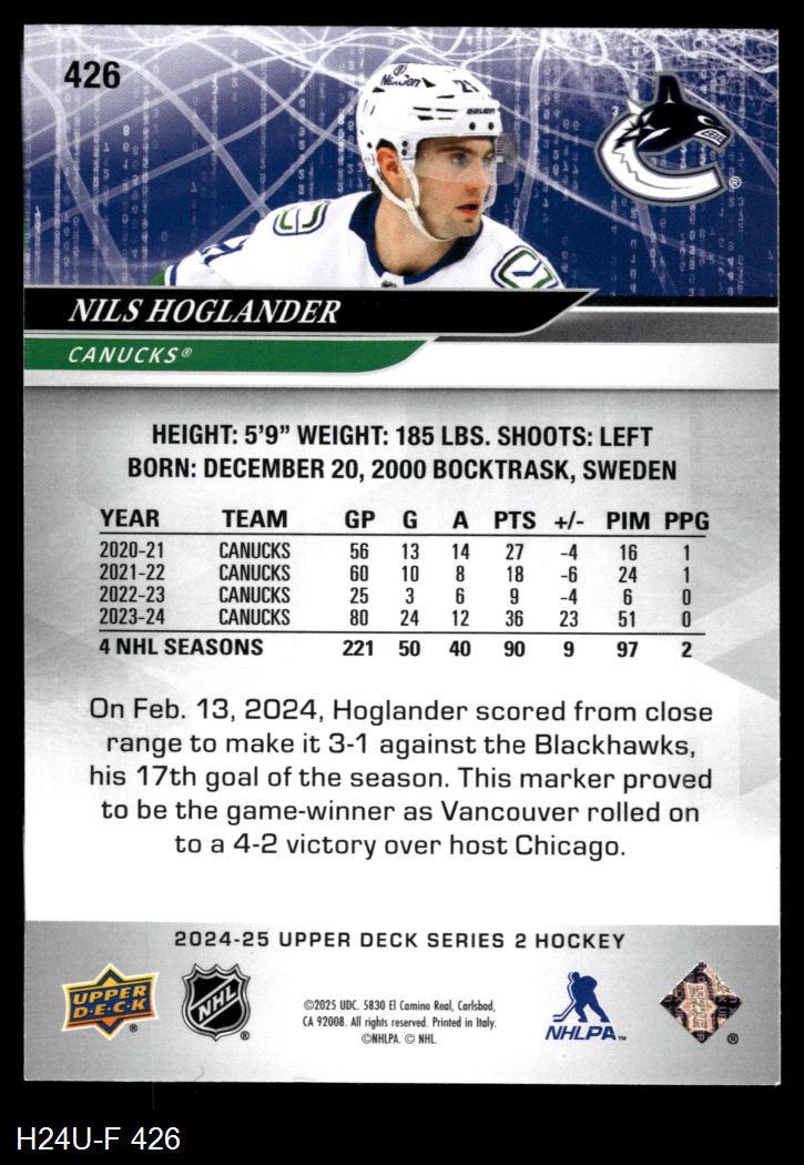 2024 Upper Deck #426 Nils Hoglander 8 - NM/MT