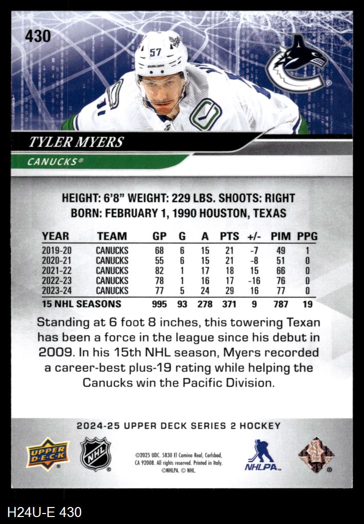 2024 Upper Deck #430 Tyler Myers 8 - NM/MT