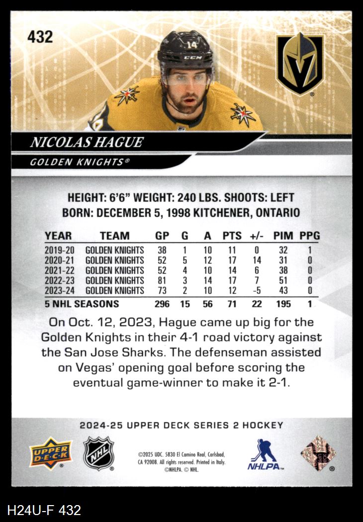 2024 Upper Deck #432 Nicolas Hague 8 - NM/MT