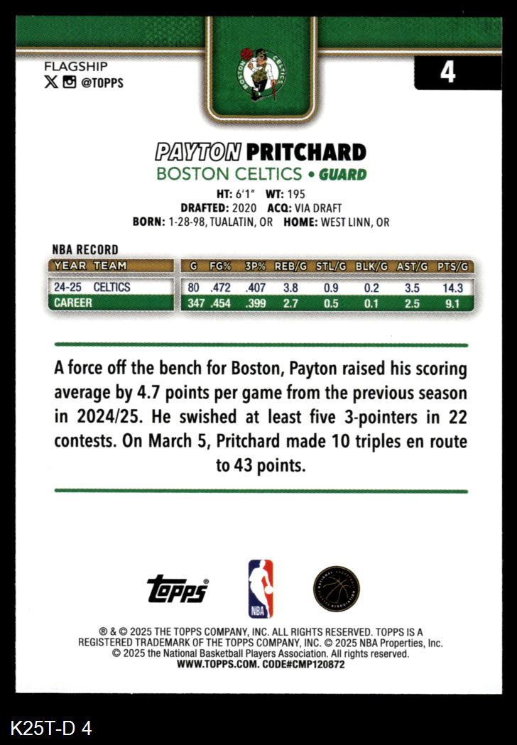 2025 Topps #4 Payton Pritchard 8 - NM/MT