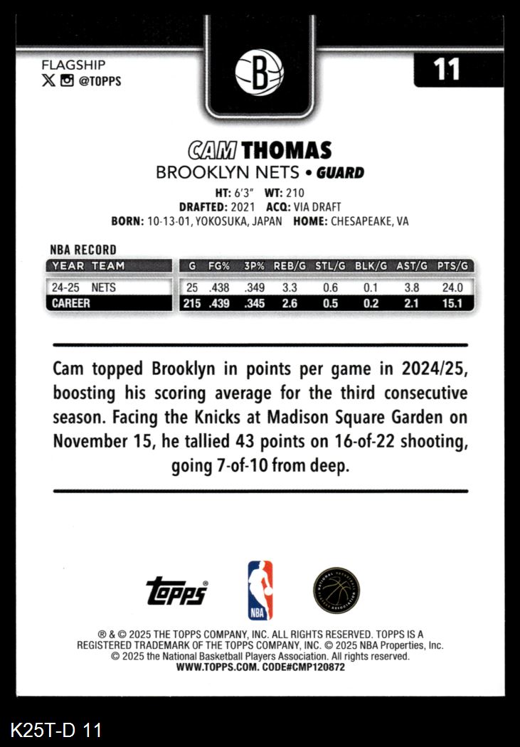 2025 Topps #11 Cam Thomas 8 - NM/MT