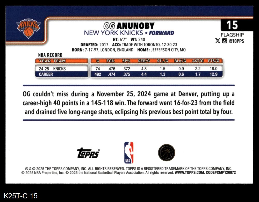 2025 Topps #15 OG Anunoby 8 - NM/MT