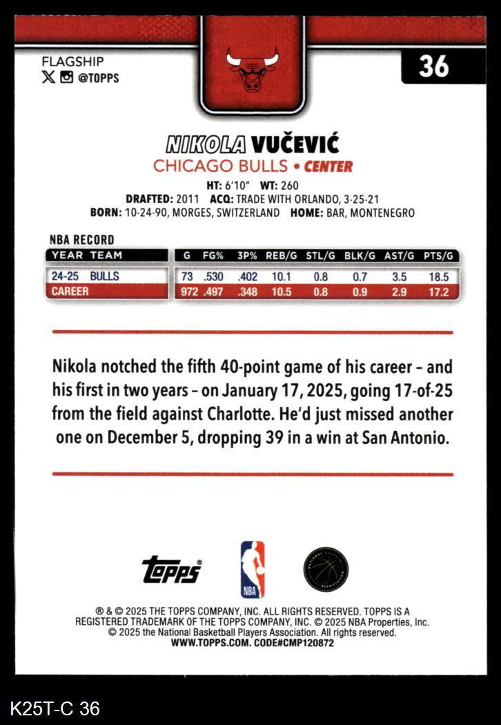 2025 Topps #36 Nikola Vucevic 8 - NM/MT
