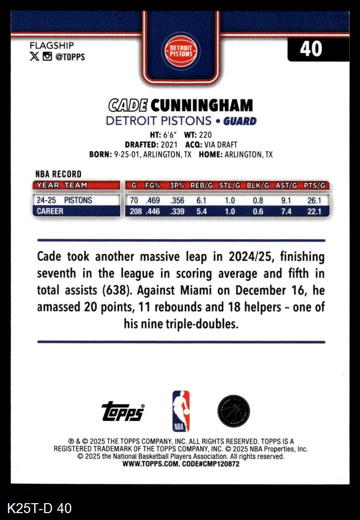 2025 Topps #40 Cade Cunningham