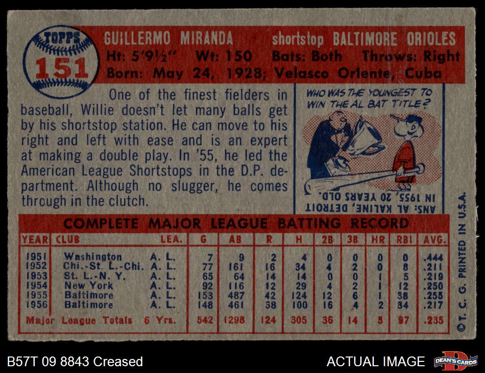 1957 Topps Baseball Cards (5,305 available)1957 Topps Orioles (382 available)