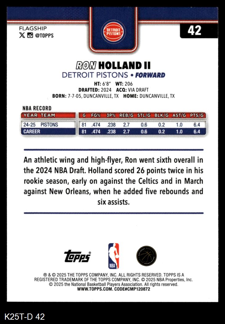 2025 Topps #42 Ron Holland II 8 - NM/MT
