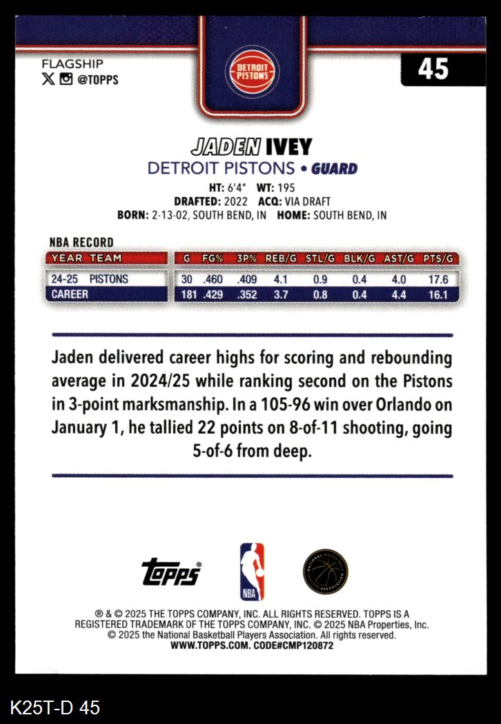 2025 Topps #45 Jaden Ivey