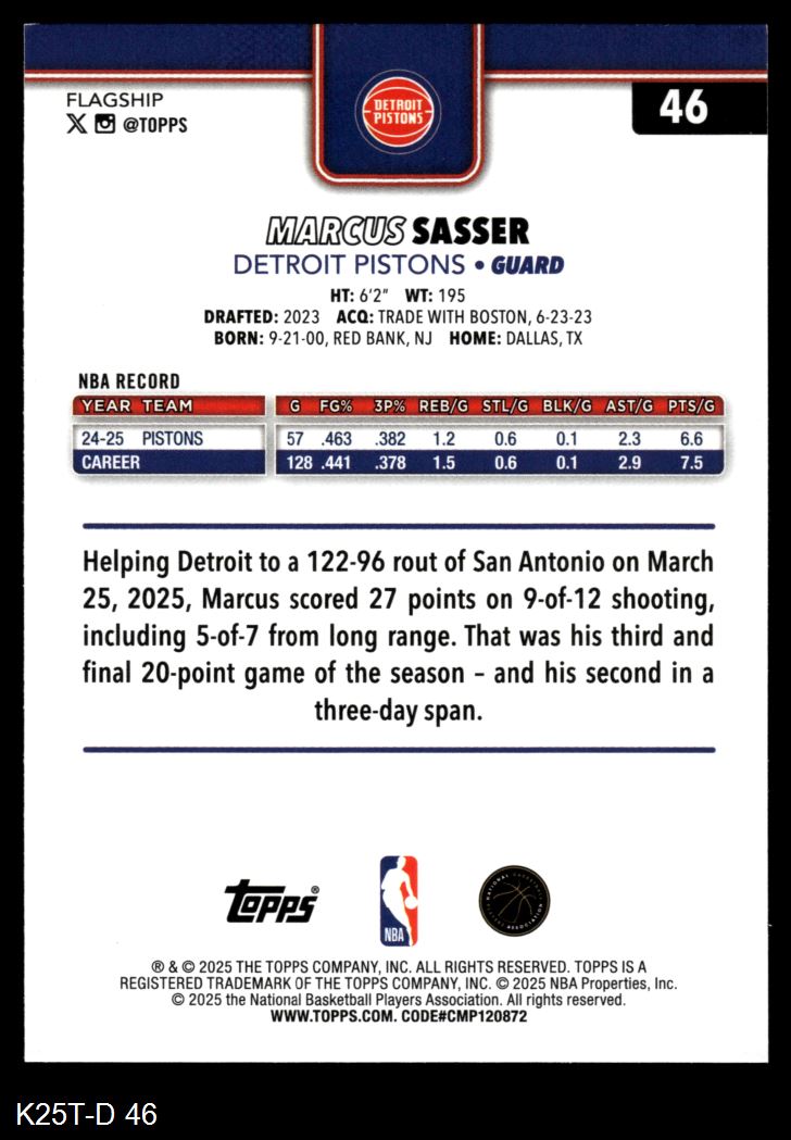 2025 Topps #46 Marcus Sasser 8 - NM/MT