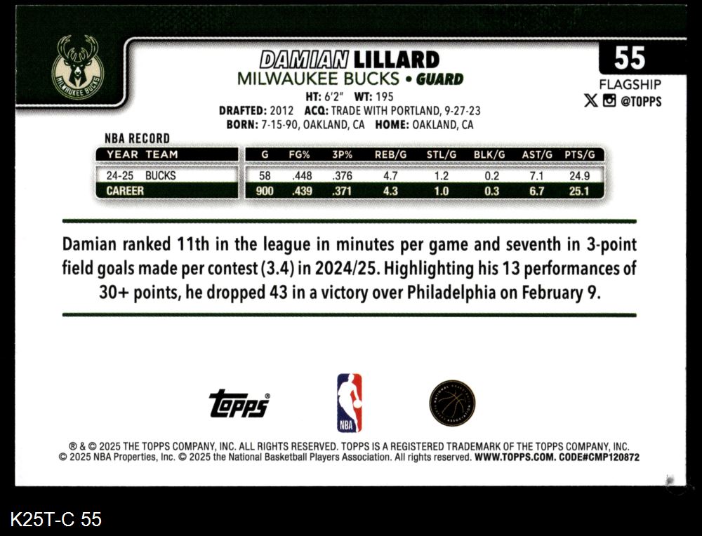 2025 Topps #55 Damian Lillard 8 - NM/MT