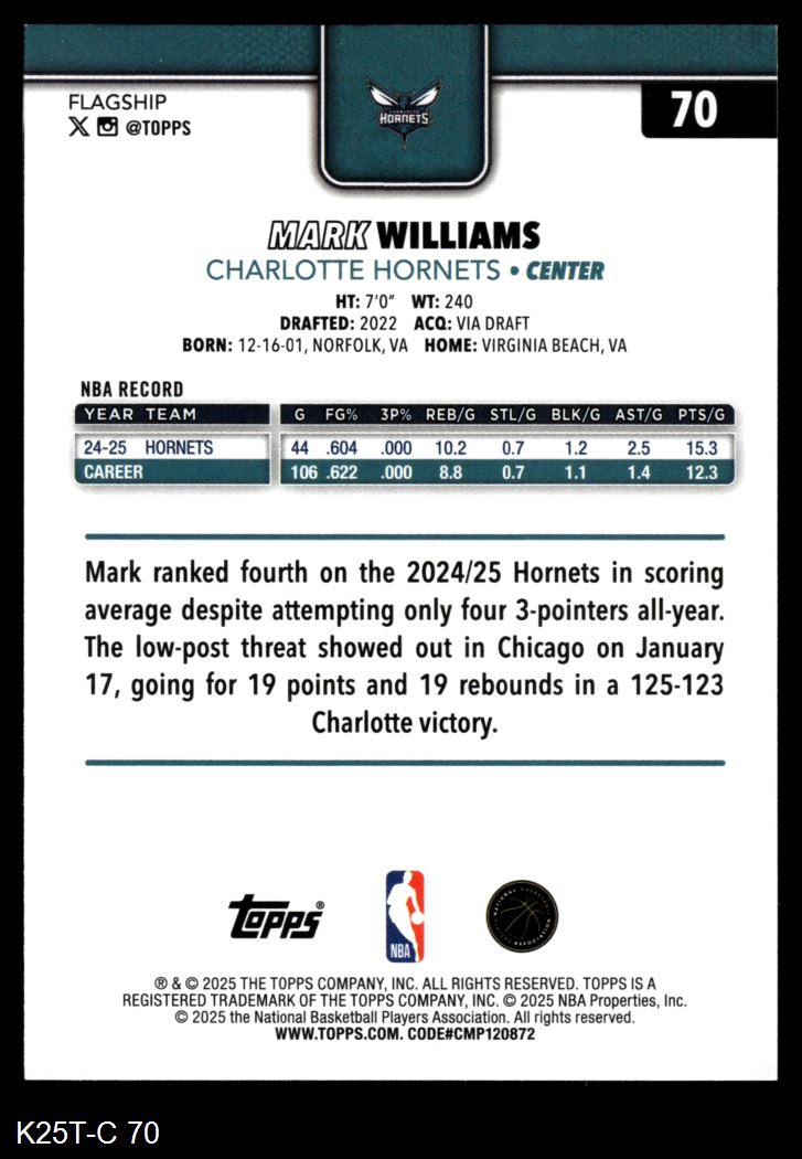 2025 Topps #70 Mark Williams