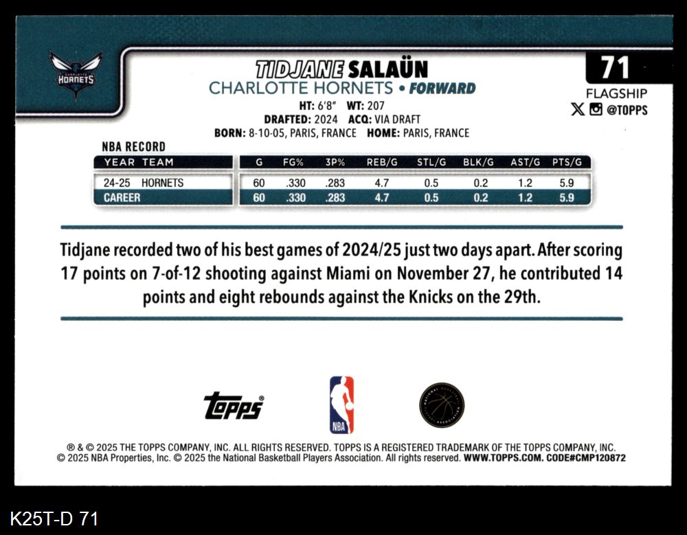 2025 Topps #71 Tidjane Salaun 8 - NM/MT