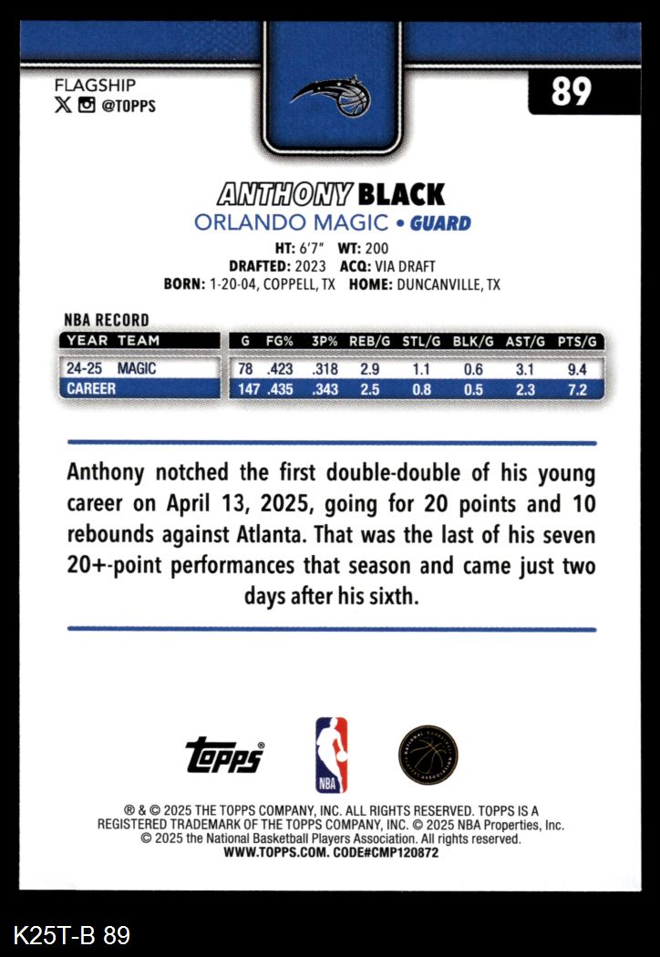 2025 Topps #89 Anthony Black 8 - NM/MT
