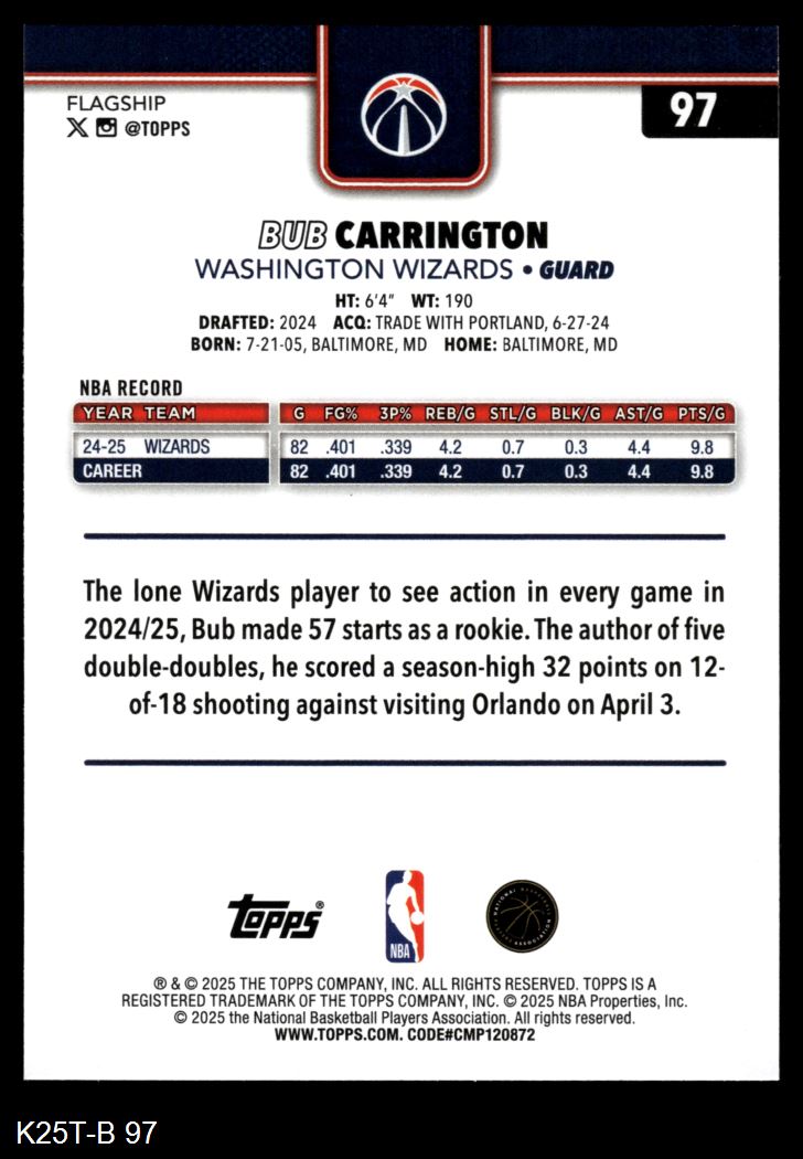 2025 Topps #97 Bub Carrington