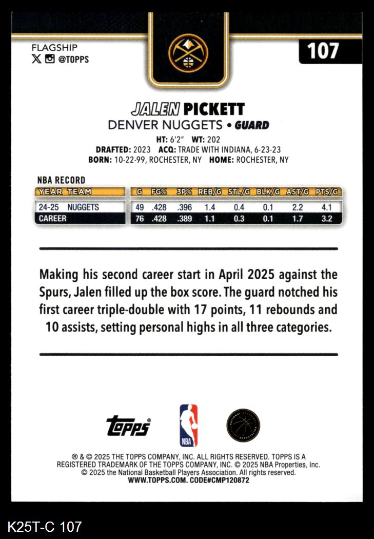 2025 Topps #107 Jalen Pickett 8 - NM/MT