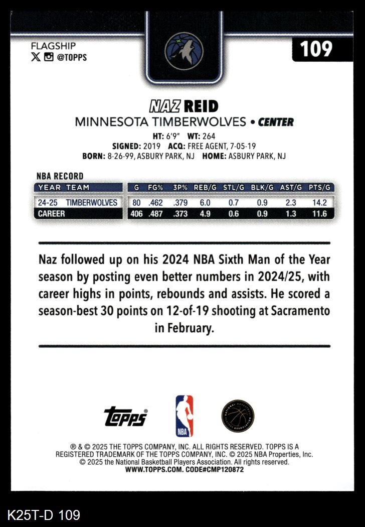 2025 Topps #109 Naz Reid 8 - NM/MT