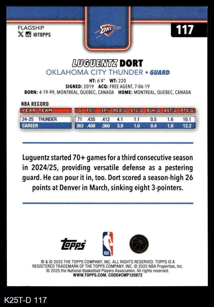 2025 Topps #117 Luguentz Dort