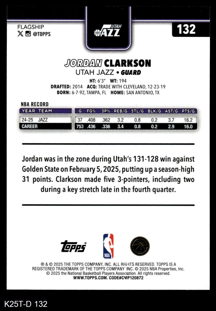 2025 Topps #132 Jordan Clarkson 8 - NM/MT