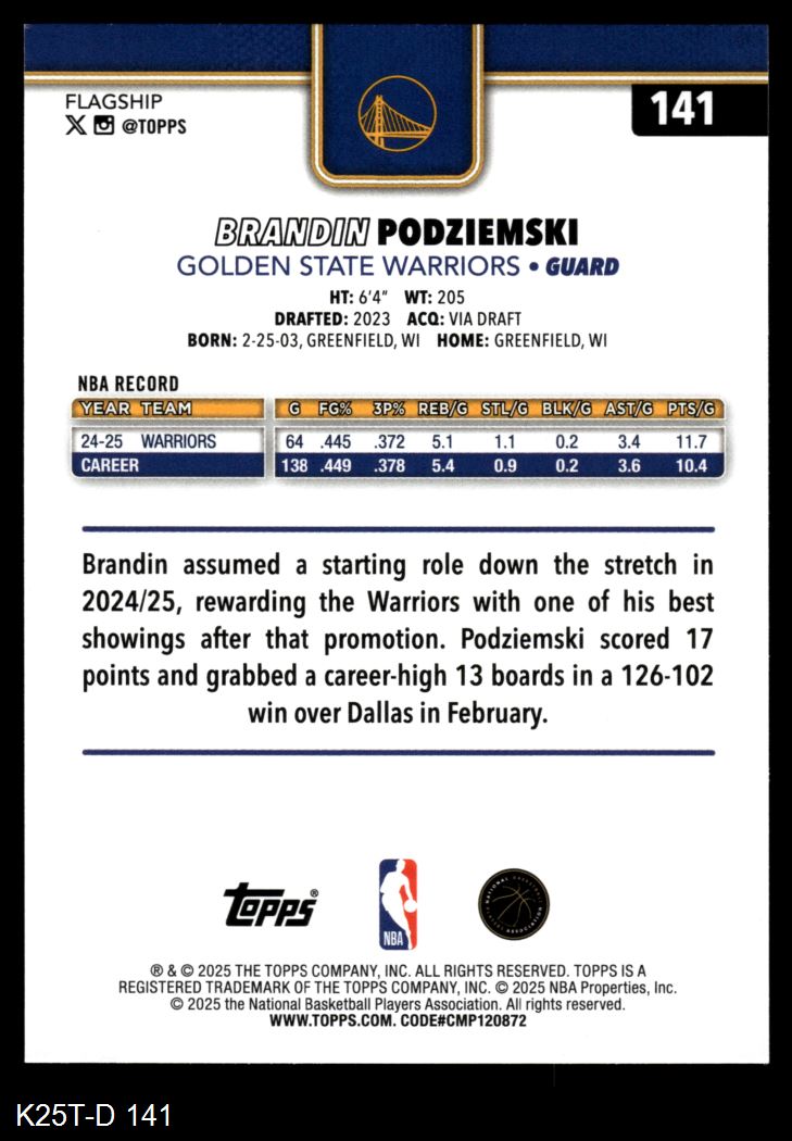 2025 Topps #141 Brandin Podziemski 8 - NM/MT