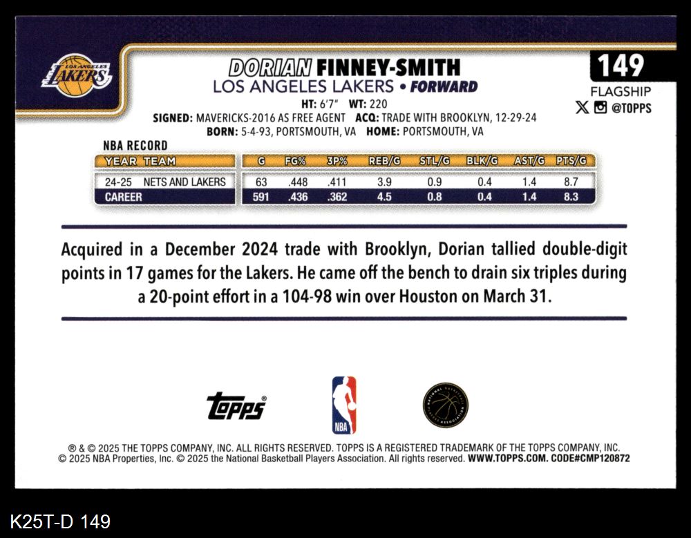 2025 Topps #149 Dorian Finney-Smith 8 - NM/MT