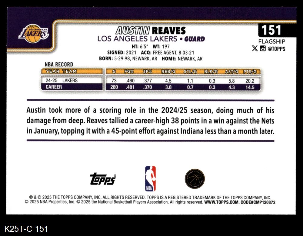2025 Topps #151 Austin Reaves 8 - NM/MT