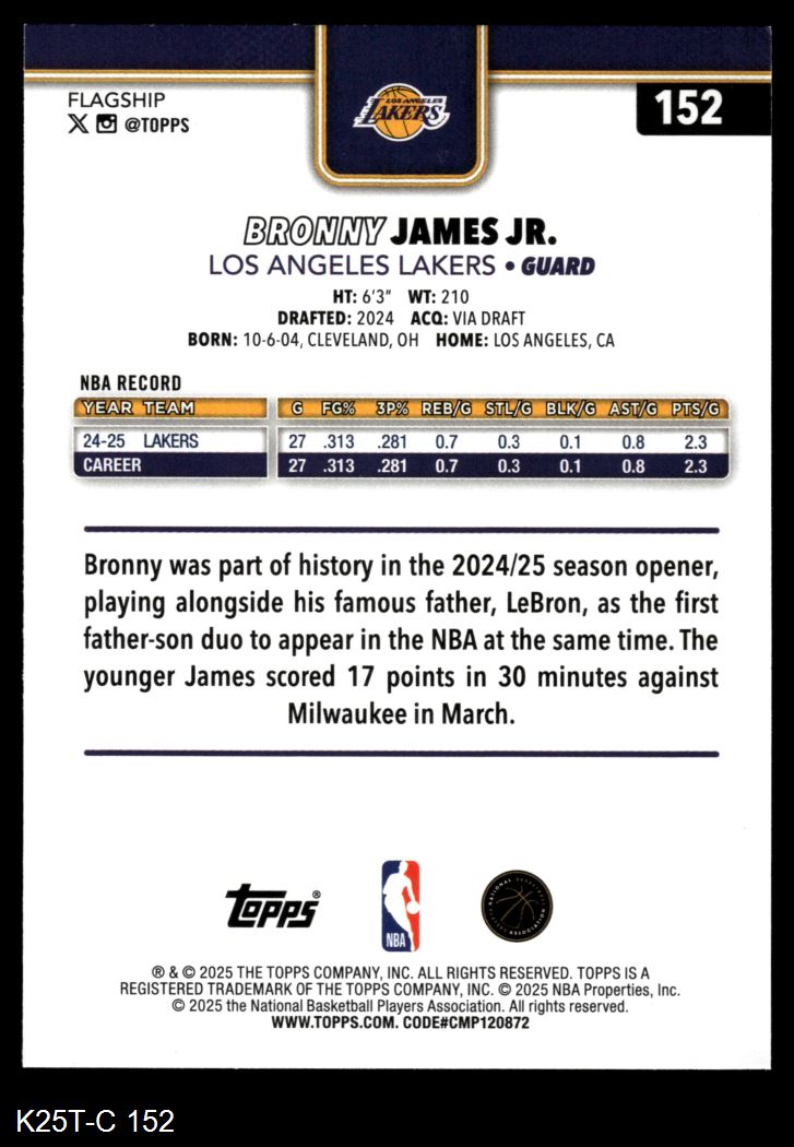 2025 Topps #152 Bronny James Jr. 8 - NM/MT