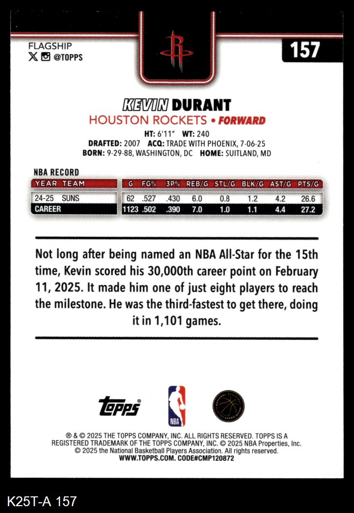 2025 Topps #157 Kevin Durant 8 - NM/MT
