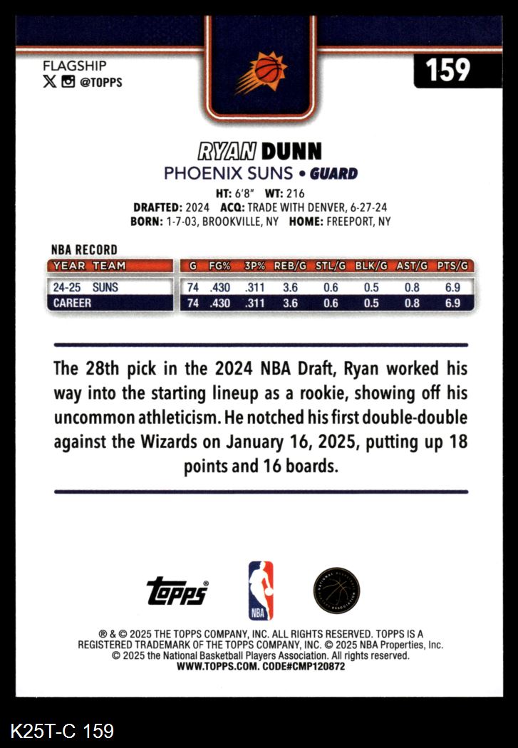 2025 Topps #159 Ryan Dunn 8 - NM/MT