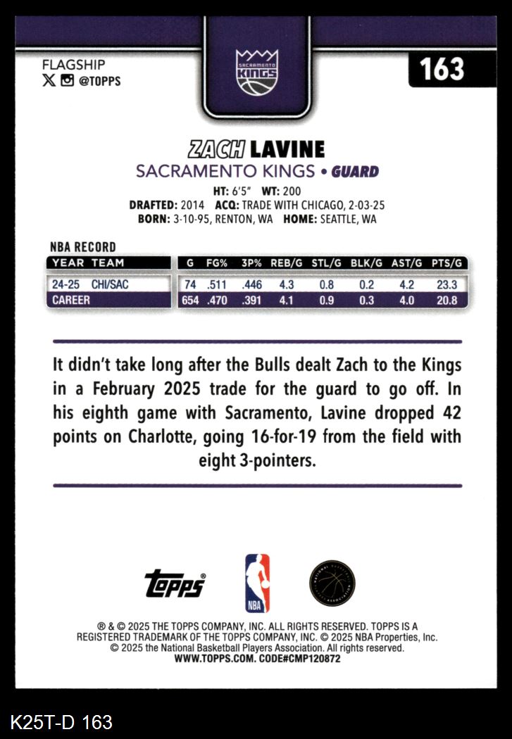 2025 Topps #163 Zach LaVine 8 - NM/MT