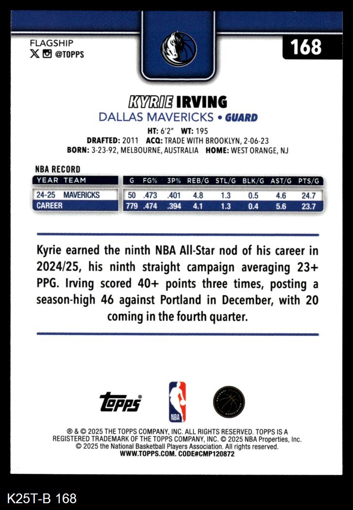 2025 Topps #168 Kyrie Irving 8 - NM/MT