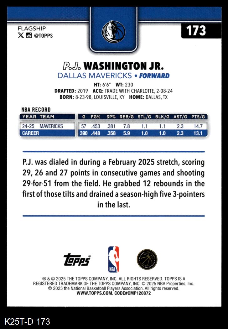 2025 Topps #173 P.J. Washington Jr. 8 - NM/MT