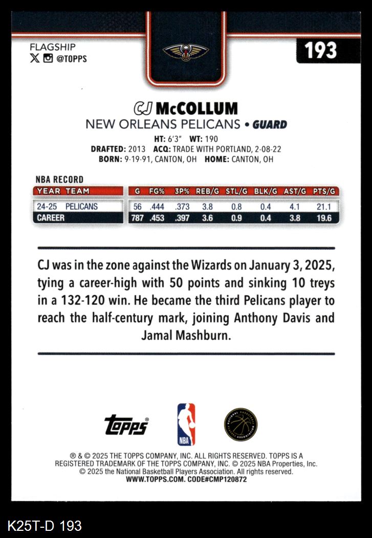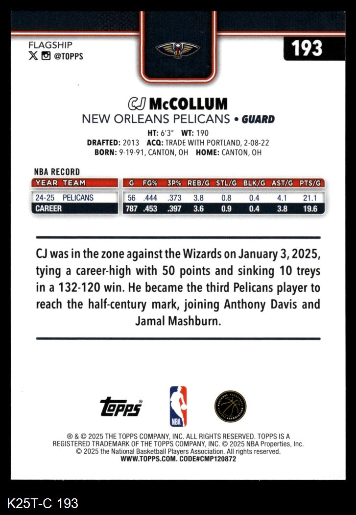 2025 Topps #193 CJ McCollum 8 - NM/MT