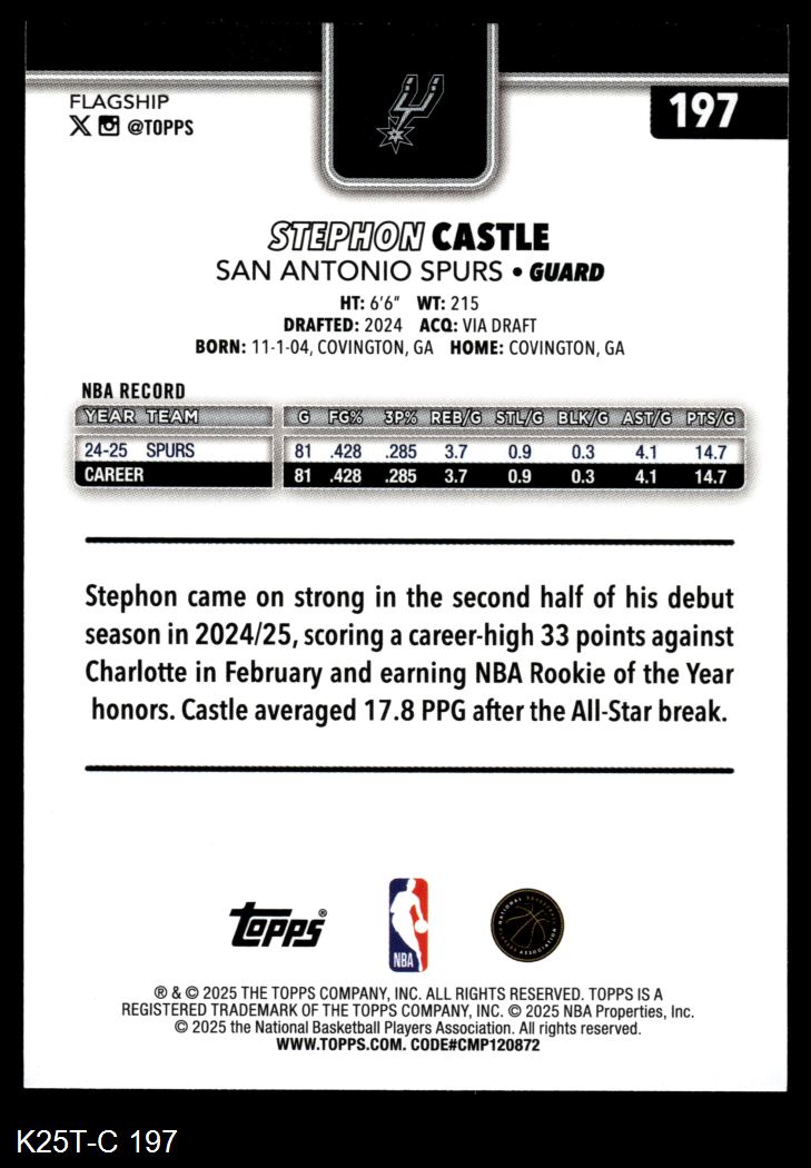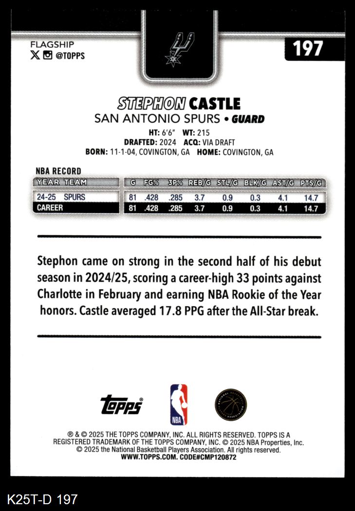 2025 Topps #197 Stephon Castle 8 - NM/MT