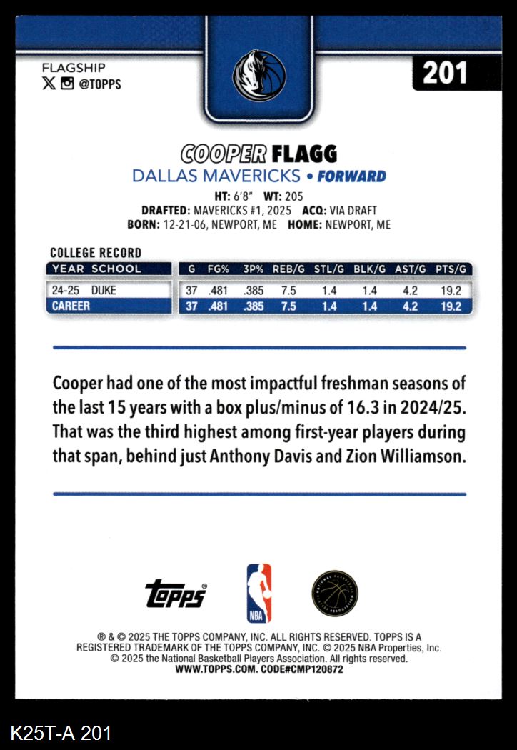 2025 Topps #201 Cooper Flagg 8 - NM/MT