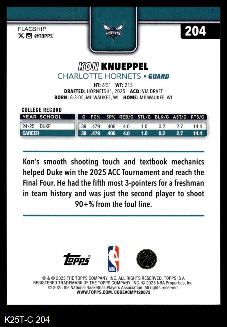 2025 Topps #204 Kon Knueppel 8 - NM/MT