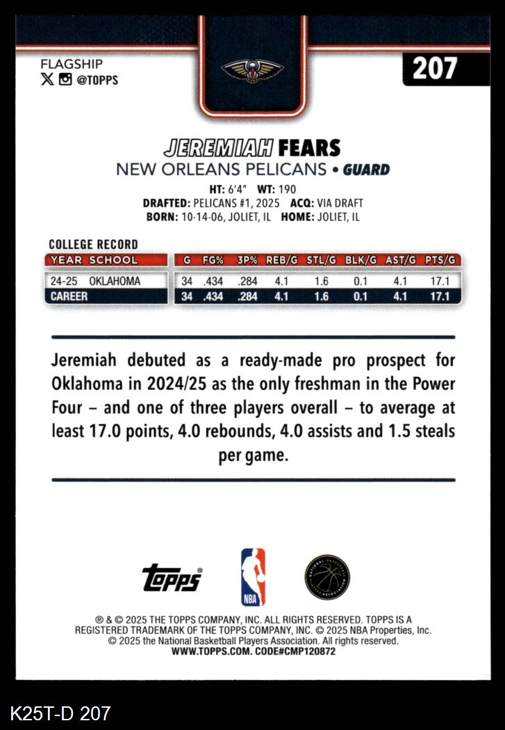 2025 Topps #207 Jeremiah Fears