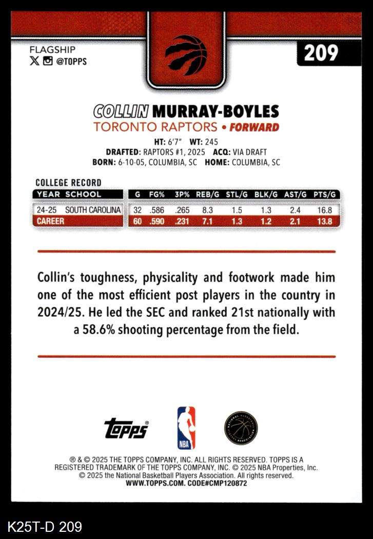 2025 Topps #209 Collin Murray-Boyles 8 - NM/MT