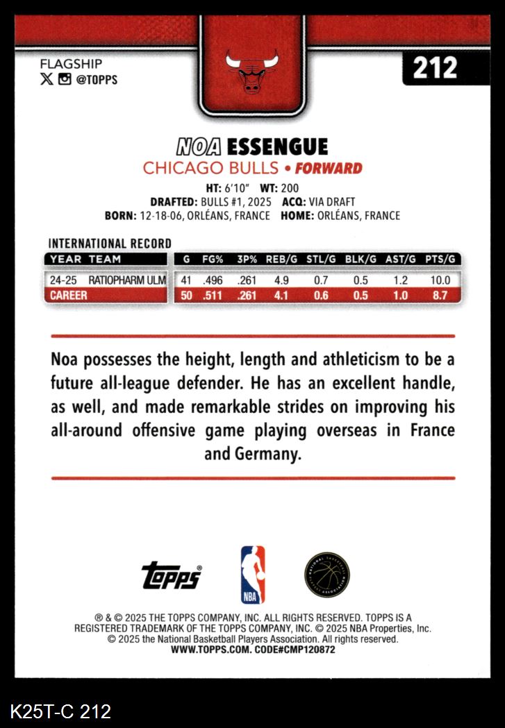 2025 Topps #212 Noa Essengue 8 - NM/MT