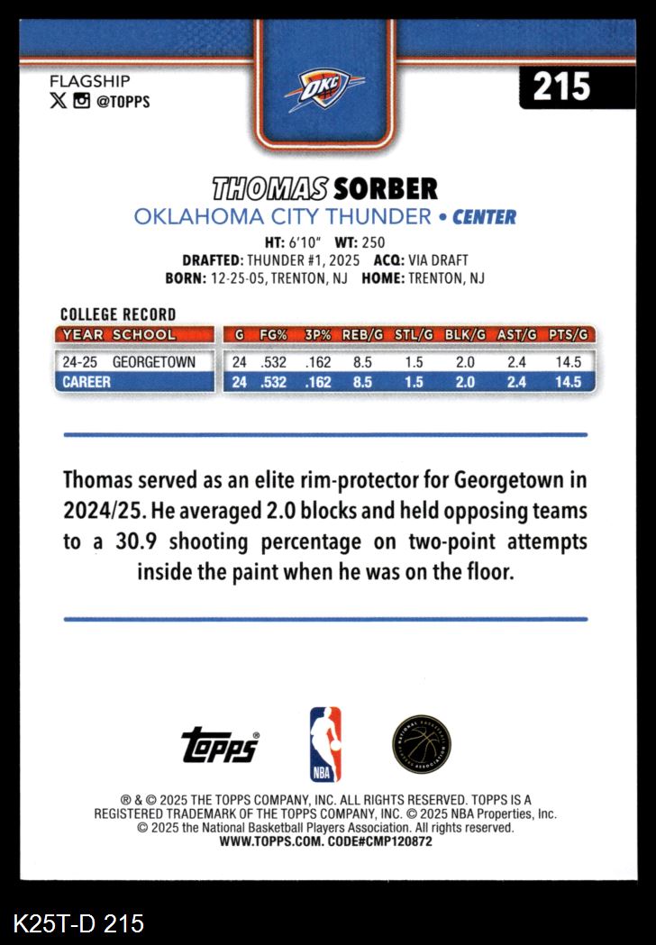 2025 Topps #215 Thomas Sorber